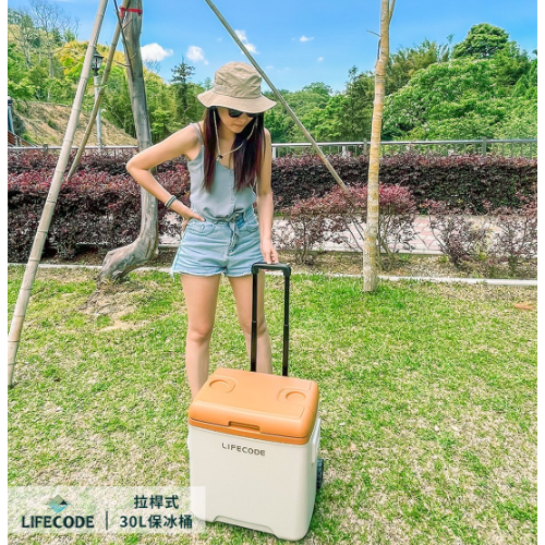 【LIFECODE】急凍屋-拉桿式30L保冰桶-附2個冰磚-綠色/咖啡色 12300314/7